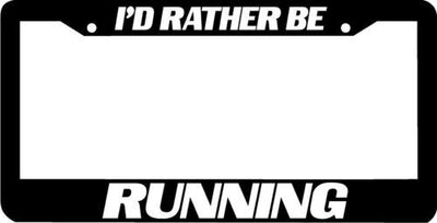 I'd Rather be RUNNING License Plate Frame Plastic License Plate Frame Polystyrene plastic with vinyl graphics. Strong with tabs on the back to secure your plate to the frame. This is a buy it now for the frame pictured It is designed to fit a US/CANADA license plate.