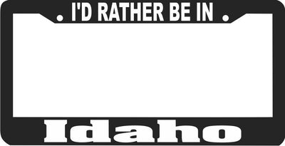 I'D RATHER BE I N License Plate Frame IDAHO Plastic License Plate Frame Polystyrene plastic with vinyl graphics. Strong with tabs on the back to secure your plate to the frame. This is a buy it now for the frame pictured It is designed to fit a US/CANADA license plate.