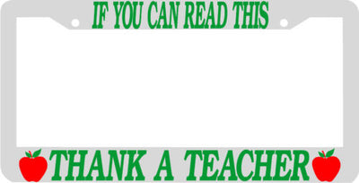 If you can read this THANK A TEACHER Plate Frame Plastic License Plate Frame Polystyrene plastic with vinyl graphics. Strong with tabs on the back to secure your plate to the frame. This is a buy it now for the frame pictured It is designed to fit a US/CANADA license plate.