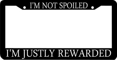 I'M NOT SPOILED IM JUSTLY REWARDED License Plate Frame
