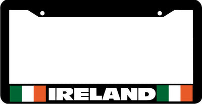 IRELAND License Plate Frame Black Plastic License Plate Frame Polystyrene plastic with vinyl graphics. Strong with tabs on the back to secure your plate to the frame. This is a buy it now for the frame pictured It is designed to fit a US/CANADA license plate.