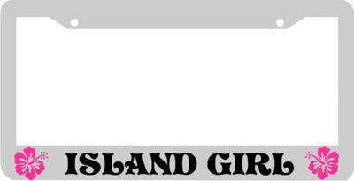 ISLAND GIRL License Plate Frame Plastic License Plate Frame Polystyrene plastic with vinyl graphics. Strong with tabs on the back to secure your plate to the frame. This is a buy it now for the frame pictured It is designed to fit a US/CANADA license plate.