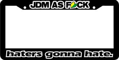 JDM AS FCK HATERS GONNA HATE. License Plate Frame Plastic License Plate Frame Polystyrene plastic with vinyl graphics. Strong with tabs on the back to secure your plate to the frame. This is a buy it now for the frame pictured It is designed to fit a US/CANADA license plate.