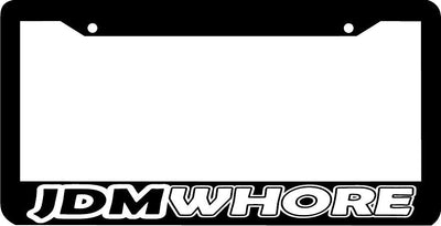 JDM WHORE License Plate Frame Plastic License Plate Frame Polystyrene plastic with vinyl graphics. Strong with tabs on the back to secure your plate to the frame. This is a buy it now for the frame pictured It is designed to fit a US/CANADA license plate.