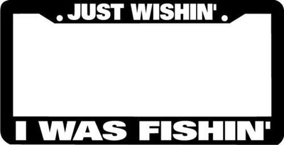 just wishin' I was fishin' License Plate Frame Plastic License Plate Frame Polystyrene plastic with vinyl graphics. Strong with tabs on the back to secure your plate to the frame. This is a buy it now for the frame pictured It is designed to fit a US/CANADA license plate.