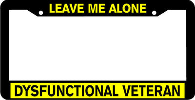 LEAVE ME ALONE DYSFUNCTIONAL VETERAN yellow black License Plate Frame
