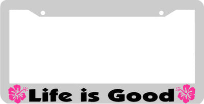 LIFE IS GOOD PINK HIBISCUS FLOWER License Plate Frame