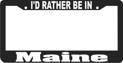 I'D RATHER BE I N License Plate Frame MAINE Plastic License Plate Frame Polystyrene plastic with vinyl graphics. Strong with tabs on the back to secure your plate to the frame. This is a buy it now for the frame pictured It is designed to fit a US/CANADA license plate.