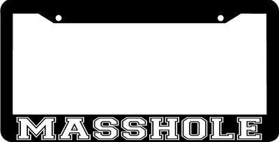 MASSHOLE License Plate Frame Plastic License Plate Frame Polystyrene plastic with vinyl graphics. Strong with tabs on the back to secure your plate to the frame. This is a buy it now for the frame pictured It is designed to fit a US/CANADA license plate.
