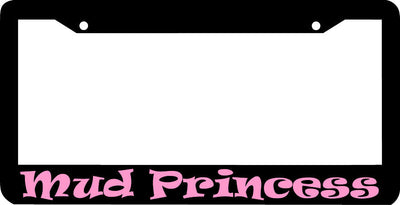 MUD PRINCESS License Plate Frame Plastic License Plate Frame Polystyrene plastic with vinyl graphics. Strong with tabs on the back to secure your plate to the frame. This is a buy it now for the frame pictured It is designed to fit a US/CANADA license plate.