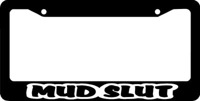 MUD SLUT License Plate Frame Plastic License Plate Frame Polystyrene plastic with vinyl graphics. Strong with tabs on the back to secure your plate to the frame. This is a buy it now for the frame pictured It is designed to fit a US/CANADA license plate.