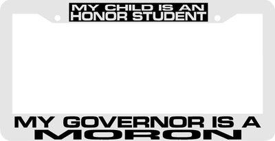 MY CHILD IS AN HONOR STUDENT MY GOVERNOR IS A MORON License Plate Frame