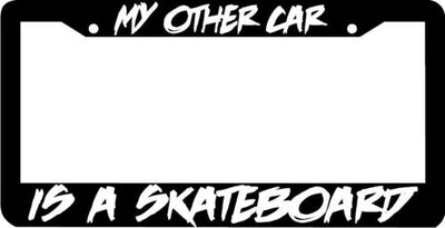 My other car is a SKATEBOARD License Plate Frame Plastic License Plate Frame Polystyrene plastic with vinyl graphics. Strong with tabs on the back to secure your plate to the frame. This is a buy it now for the frame pictured It is designed to fit a US/CANADA license plate.