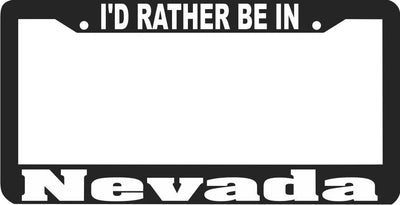 I'D RATHER BE I N License Plate Frame NEVADA Plastic License Plate Frame Polystyrene plastic with vinyl graphics. Strong with tabs on the back to secure your plate to the frame. This is a buy it now for the frame pictured It is designed to fit a US/CANADA license plate.