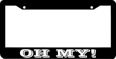 OH MY! License Plate Frame Plastic License Plate Frame Polystyrene plastic with vinyl graphics. Strong with tabs on the back to secure your plate to the frame. This is a buy it now for the frame pictured It is designed to fit a US/CANADA license plate.