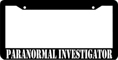 PARANORMAL INVESTIGATOR License Plate Frame Plastic License Plate Frame Polystyrene plastic with vinyl graphics. Strong with tabs on the back to secure your plate to the frame. This is a buy it now for the frame pictured It is designed to fit a US/CANADA license plate.