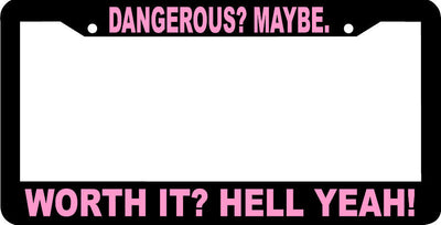 PINK - DANGEROUS MAYBE WORTH IT HELL YEAH HUMOR FUNNY License Plate Frame
