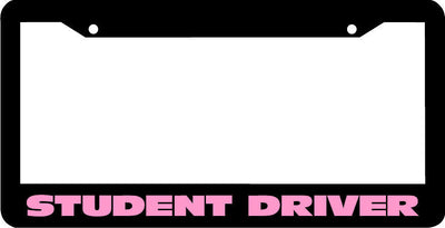 STUDENT DRIVER License Plate Frame Plastic License Plate Frame Polystyrene plastic with vinyl graphics. Strong with tabs on the back to secure your plate to the frame. This is a buy it now for the frame pictured It is designed to fit a US/CANADA license plate.