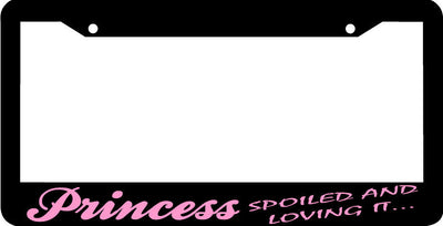 PRINCESS SPOILED AND LOVING IT license plate frame Plastic License Plate Frame Polystyrene plastic with vinyl graphics. Strong with tabs on the back to secure your plate to the frame. This is a buy it now for the frame pictured It is designed to fit a US/CANADA license plate.
