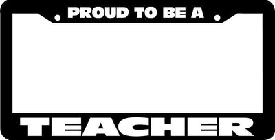 PROUD TO BE A TEACHER License Plate Frame Plastic License Plate Frame Polystyrene plastic with vinyl graphics. Strong with tabs on the back to secure your plate to the frame. This is a buy it now for the frame pictured It is designed to fit a US/CANADA license plate.