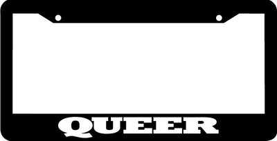 QUEER License Plate Frame Plastic License Plate Frame Polystyrene plastic with vinyl graphics. Strong with tabs on the back to secure your plate to the frame. This is a buy it now for the frame pictured It is designed to fit a US/CANADA license plate.