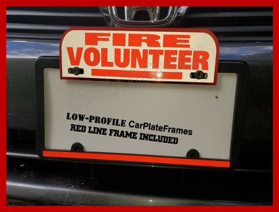 REFLECTIVE FIRE VOLUNTEER ALUMINUM PLATE TOPPER W/ RED LINE LICENSE PLATE FRAME
