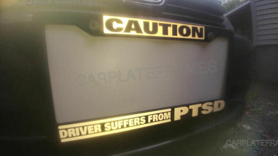 REFLECTIVE PTSD CAUTION DRIVER SUFFERS FROM License Plate Frame