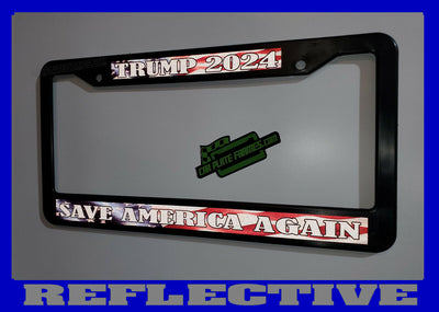 REFLECTIVE TRUMP 2024 SAVE AMERICA AGAIN License Plate Frame