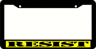 RESIST license plate frame Plastic License Plate Frame Polystyrene plastic with vinyl graphics. Strong with tabs on the back to secure your plate to the frame. This is a buy it now for the frame pictured It is designed to fit a US/CANADA license plate. Actual frame measurements photo used with permission