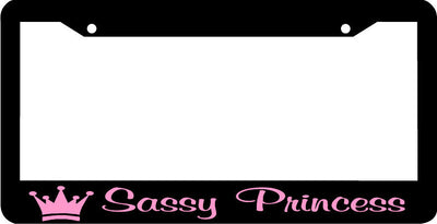 SASSY PRINCESS License Plate Frame Plastic License Plate Frame Polystyrene plastic with vinyl graphics. Strong with tabs on the back to secure your plate to the frame. This is a buy it now for the frame pictured It is designed to fit a US/CANADA license plate.