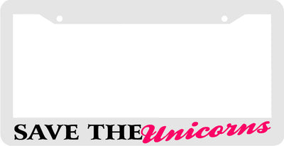 SAVE THE UNICORNS pink white unicorn License Plate Frame
