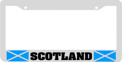 SCOTLAND SCOTTISH License Plate Frame Plastic License Plate Frame Polystyrene plastic with vinyl graphics. Strong with tabs on the back to secure your plate to the frame. This is a buy it now for the frame pictured It is designed to fit a US/CANADA license plate.