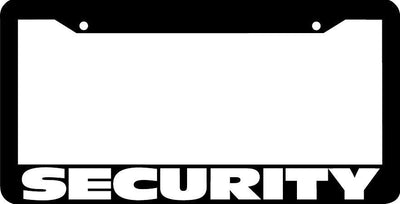 SECURITY License Plate Frame Plastic License Plate Frame Polystyrene plastic with vinyl graphics. Strong with tabs on the back to secure your plate to the frame. This is a buy it now for the frame pictured It is designed to fit a US/CANADA license plate.