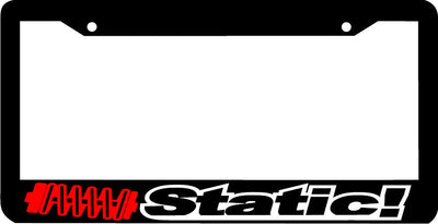 STATIC Plastic License Plate Frame Polystyrene plastic with vinyl graphics. Strong with tabs on the back to secure your plate to the frame. This is a buy it now for the frame pictured