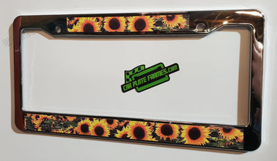 CHROME PLATE FRAME WITH SUNFLOWERS License Plate Frame