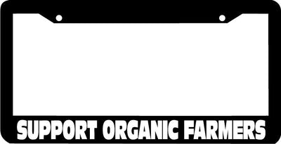 SUPPORT ORGANIC FARMERS License Plate Frame Plastic License Plate Frame Polystyrene plastic with vinyl graphics. Strong with tabs on the back to secure your plate to the frame. This is a buy it now for the frame pictured It is designed to fit a US/CANADA license plate.