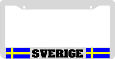 SVERIGE SWEDEN SWEDISH License Plate Frame Plastic License Plate Frame Polystyrene plastic with vinyl graphics. Strong with tabs on the back to secure your plate to the frame. This is a buy it now for the frame pictured It is designed to fit a US/CANADA license plate.