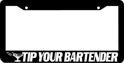 TIP YOUR BARTER Bar License Plate Frame Plastic License Plate Frame Polystyrene plastic with vinyl graphics. Strong with tabs on the back to secure your plate to the frame. This is a buy it now for the frame pictured It is designed to fit a US/CANADA license plate.