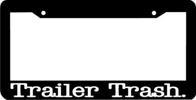 TRAILER TRASH License Plate Frame Plastic License Plate Frame Polystyrene plastic with vinyl graphics. Strong with tabs on the back to secure your plate to the frame. This is a buy it now for the frame pictured It is designed to fit a US/CANADA license plate.