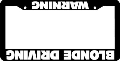 blonde driving (upside down) License Plate Frame Plastic License Plate Frame Polystyrene plastic with vinyl graphics. Strong with tabs on the back to secure your plate to the frame. This is a buy it now for the frame pictured It is designed to fit a US/CANADA license plate.