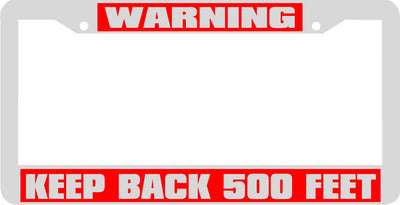 WARNING KEEP BACK 500 FEET WHITE PLASTIC License Plate Frame