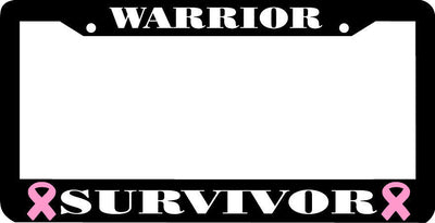 WARRIOR SURVIVOR BREAST CANCER PINK RIBBON License Plate Frame