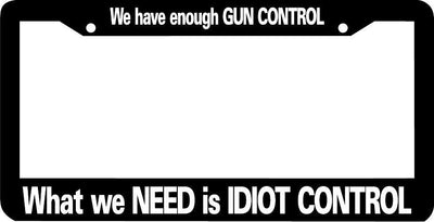WE HAVE ENOUGH GUN CONTROL WHAT WE NEED IS IDIOT CONTROL License Plate Frame