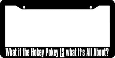 WHAT IF THE HOKEY POKEY IS WHAT IT'S ABOUT Plastic License Plate Frame Polystyrene plastic with vinyl graphics. Strong with tabs on the back to secure your plate to the frame. This is a buy it now for the frame pictured