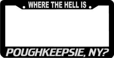 WHERE THE HELL IS POUGHKEEPSIE, Plastic License Plate Frame Polystyrene plastic with vinyl graphics. Strong with tabs on the back to secure your plate to the frame. This is a buy it now for the frame pictured It is designed to fit a US/CANADA license plate.