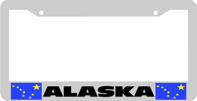 ALASKA License Plate Frame Plastic License Plate Frame Polystyrene plastic with vinyl graphics. Strong with tabs on the back to secure your plate to the frame. This is a buy it now for the frame pictured It is designed to fit a US/CANADA license plate.