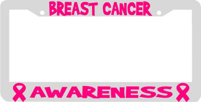 BREAST AWARENESS License Plate Frame Plastic License Plate Frame Polystyrene plastic with vinyl graphics. Strong with tabs on the back to secure your plate to the frame. This is a buy it now for the frame pictured It is designed to fit a US/CANADA license plate.