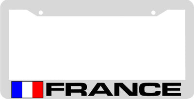 FRANCE License Plate Frame PLASTIC LICENSE PLATE FRAME WITH VINYL GRAPHICS Plastic License Plate Frame Polystyrene plastic with vinyl graphics. Strong with tabs on the back to secure your plate to the frame. This is a buy it now for the frame pictured It is designed to fit a US/CANADA license plate.