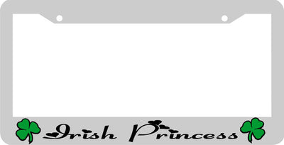 FRAME IRISH PRINCESS License Plate Frame Plastic License Plate Frame Polystyrene plastic with vinyl graphics. Strong with tabs on the back to secure your plate to the frame. This is a buy it now for the frame pictured It is designed to fit a US/CANADA license plate.