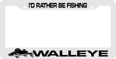 white frame WALLEYE I'D RATHER BE FISHING License Plate Frame